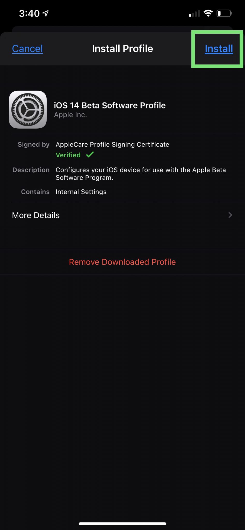 You’re now running iOS 14 Beta! Explore the new features and enjoy.